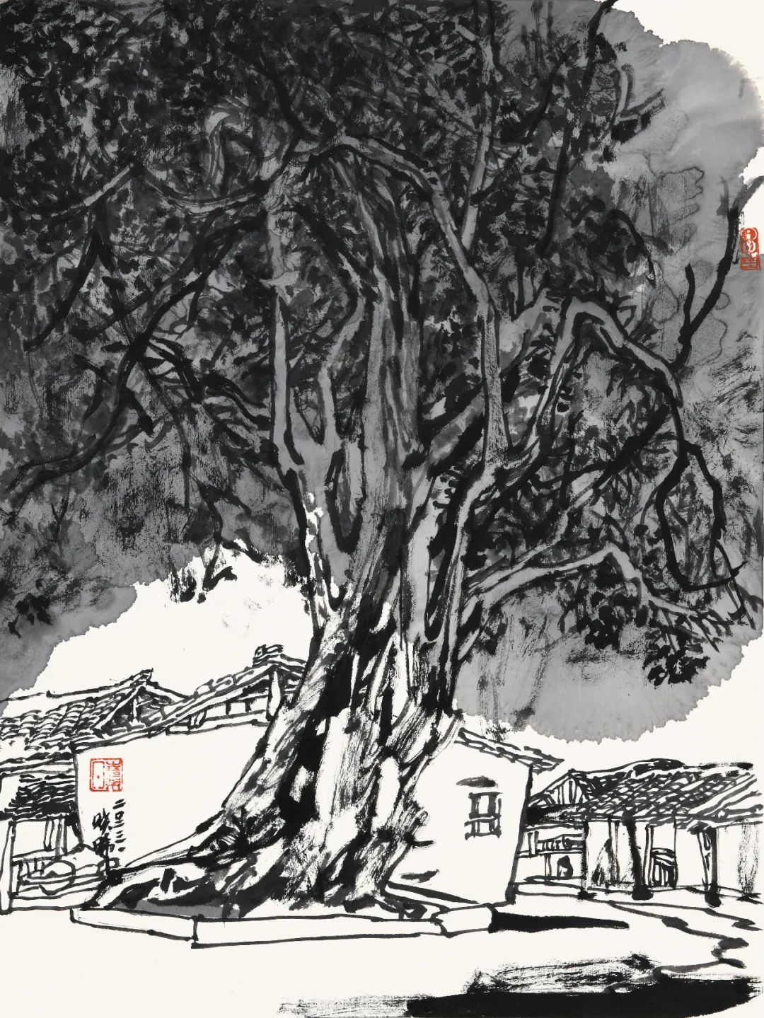 縉云和松陽這兩個地方都擁有獨特的自然風光和濃厚的人文氛圍。縉云的山水景色給予了我廣闊的視野和靈感。在這里,可以欣賞到壯麗的山巒、奇特的巖石和清澈的溪流。這些自然景觀為寫生創作提供了豐富的背景元素。在松陽,可以欣賞到青石板鋪就的小巷、古老的民居建筑和波浪似的梯田。鄉村生活的靜謐給予了創作平靜的心境,可以遠離喧囂,沉浸在自然的懷抱中,與自己的內心對話。在與村民的互動中,我了解到他們對生活的熱愛和對鄉土生活的執著。他們是村莊的靈魂和活力,通過與他們的交流,我更深刻地理解到人物的內在情感和精神追求。這些情感和追求成為了創作中的靈感源泉。我也努力希望可以將他們的情感和內心世界通過筆墨表達出來。