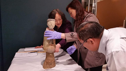 舉辦外展的過(guò)程非常紛繁復(fù)雜,程序上先是意向書(shū),國(guó)內(nèi)各級(jí)批文,文物總數(shù)或一級(jí)文物數(shù)超標(biāo)須報(bào)國(guó)務(wù)院批準(zhǔn)等等。專(zhuān)業(yè)和具體事務(wù)上,展覽策劃、挑選展品、拍攝照片或?qū)n}片、包裝、國(guó)內(nèi)運(yùn)輸、國(guó)際保險(xiǎn)、海關(guān)等等不一而足。曾經(jīng)有一次外國(guó)保險(xiǎn)公司聯(lián)保,直接從英國(guó)派員到徐州對(duì)每件文物不厭其煩逐一檢查。籌備期間雙方的溝通協(xié)調(diào)、理解和支持是工作順利進(jìn)行的保證,有些還建立了很深的私人友誼。在我主持所有的外展項(xiàng)目中,最順暢的是與美國(guó)紐約華美協(xié)進(jìn)社中國(guó)美術(shù)館間的合作,雖然是兩館展覽團(tuán)隊(duì)的精誠(chéng)合作,實(shí)際上更是我和七七級(jí)同專(zhuān)業(yè)師姐、華美協(xié)進(jìn)社中國(guó)美術(shù)館館長(zhǎng)海蔚藍(lán)之間的一次愉快合作。