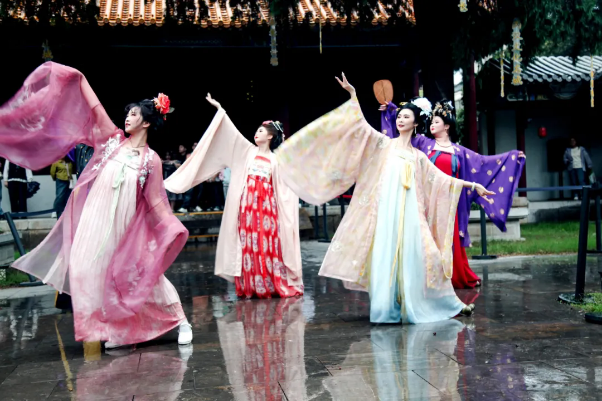 雙節期間,徐州博物館協同兩大特展和乾隆行宮延長開放時間,將每日閉館時間由17:00延后至20:00,以更充裕的開放時間服務觀眾。同時乾隆行宮內開展了“徐博之夜”漢服巡游、舞蹈快閃活動,游客在景區指定路線沿途可觀賞舞蹈演員身著華美漢服,以快閃的形式律動身姿展現絕美的漢舞古韻,互動拍照留下精彩的瞬間。在霓虹燈的映襯下,游客輕松夜游徐州彭城夜。