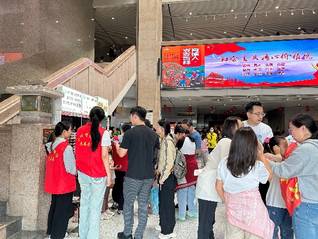 徐州博物館假期客流密集,為緩解博物館講解壓力、提升游覽體驗,我館組織社會志愿者、黨員志愿者、銀發志愿者服務隊的260余位志愿者在展廳、乾隆行宮等展區向游客講解徐州歷史文化。并聯合各類志愿服務力量投入在一線窗口崗位積極參與秩序維護疏導、咨詢解答、做好各項游客服務工作和文明旅游工作。