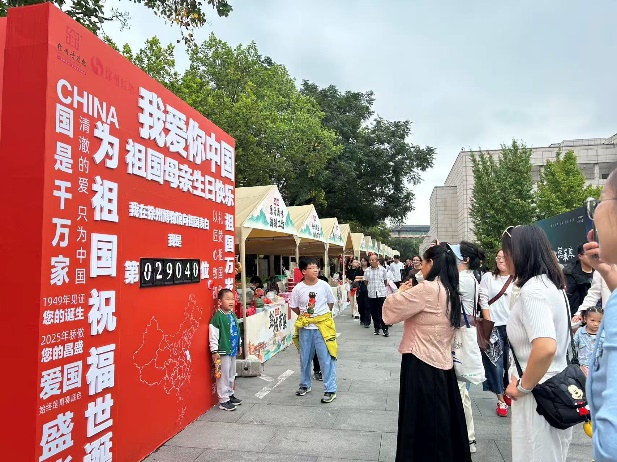 在游覽中也要滿足游客的口腹之欲,我館圍繞非遺文創主題展示徐州特色美食,糖畫、烤串、徐博卷、文創雪糕、徐州米線,徐州香包、徐州剪紙、文創冰箱貼等多種具有徐州特色的伴手禮以逛集市賞文化吃美食的形式來擴大游客消費引流效應,在獵奇的消費中感受假期生活的趣味與輕松。并在集市中設立愛國表白墻,吸引數萬名游客打卡祝福祖國生日快樂,昌盛永駐。